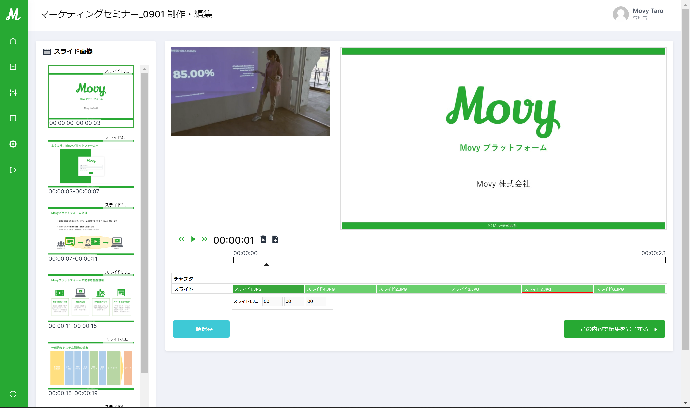 セミナー等でよく使用されるパワポをスライド画像として使用することで、動画とあわせて実際に実施されるセミナーや研修をWEB上で再現します。視聴者の時間と場所を選びません。