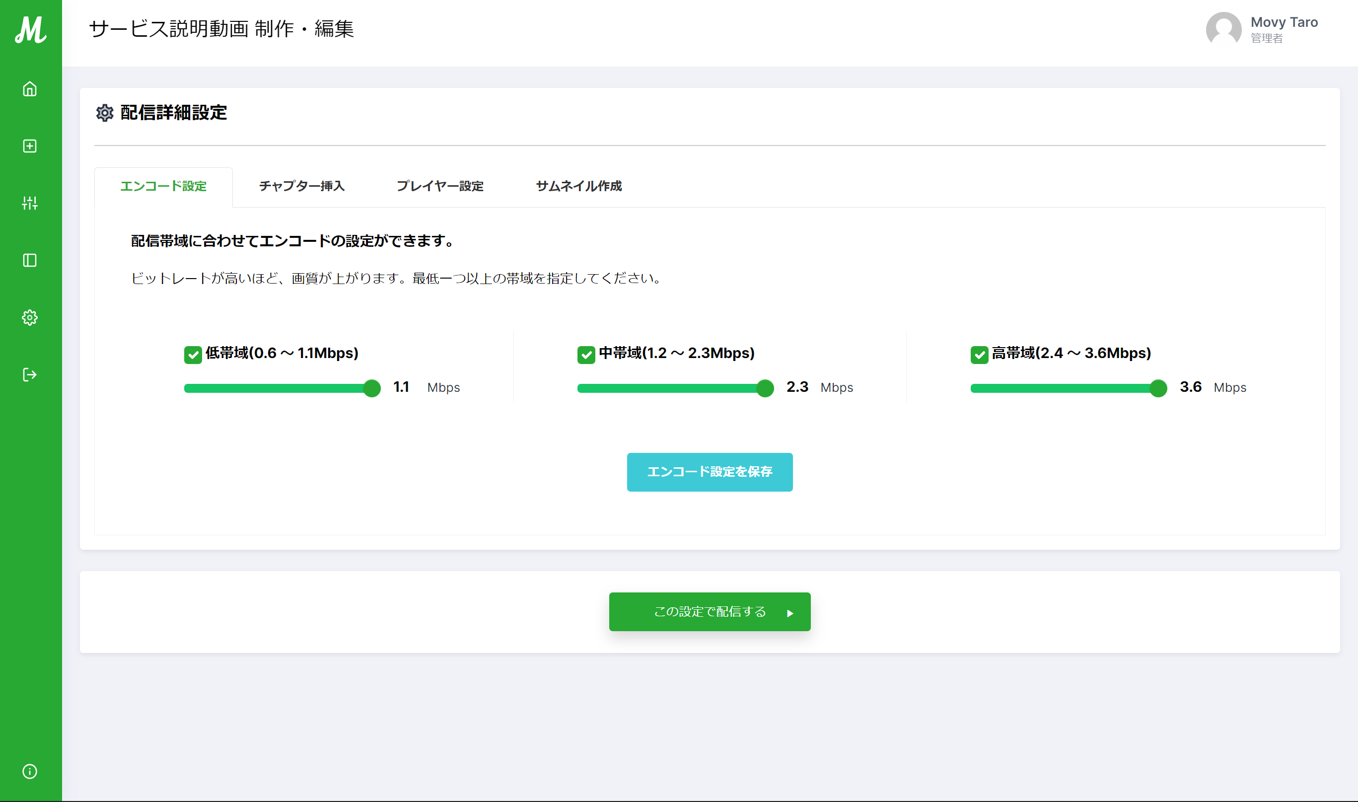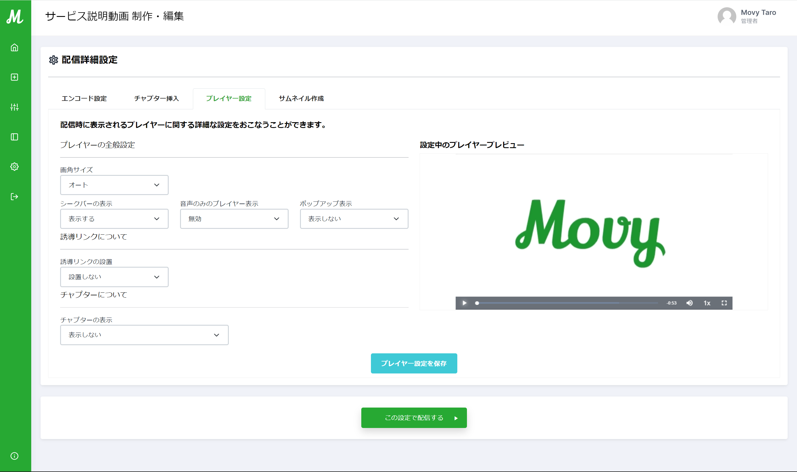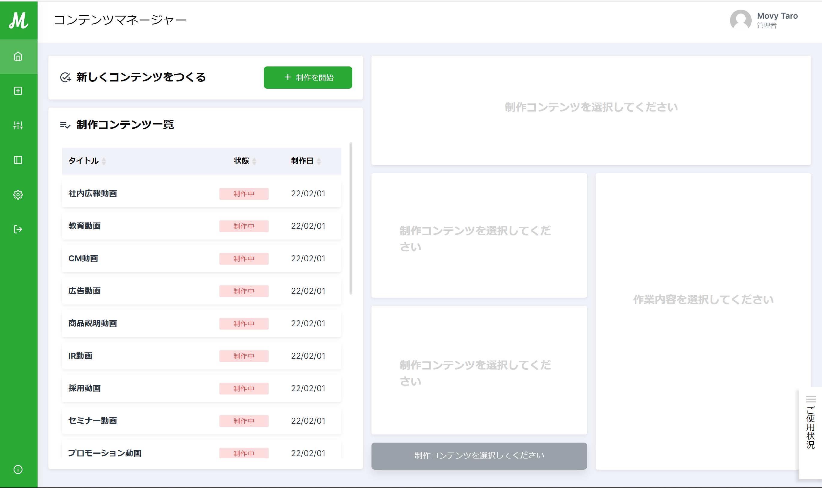 作成中のコンテンツ、公開されているコンテンツを一元管理します。公開の日時設定、HP上に埋め込まれる動画プレーヤーのサイズ、埋め込み用のタグの生成など集約して管理できるので効率的に動画配信を可能にします。