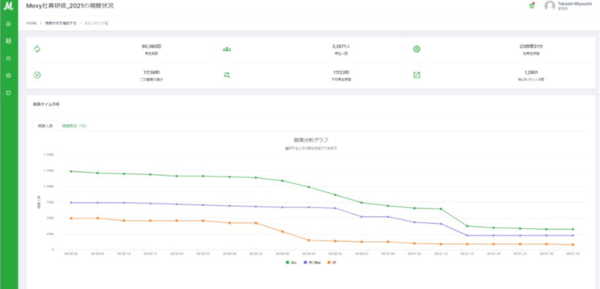 動画コンテンツがどのように視聴されているか、マーケティングに欠かせない分析機能を搭載。視聴人数、視聴割合、流入元など簡単に確認ができます。コンテンツの作り直しや、改善活動にも有効です。